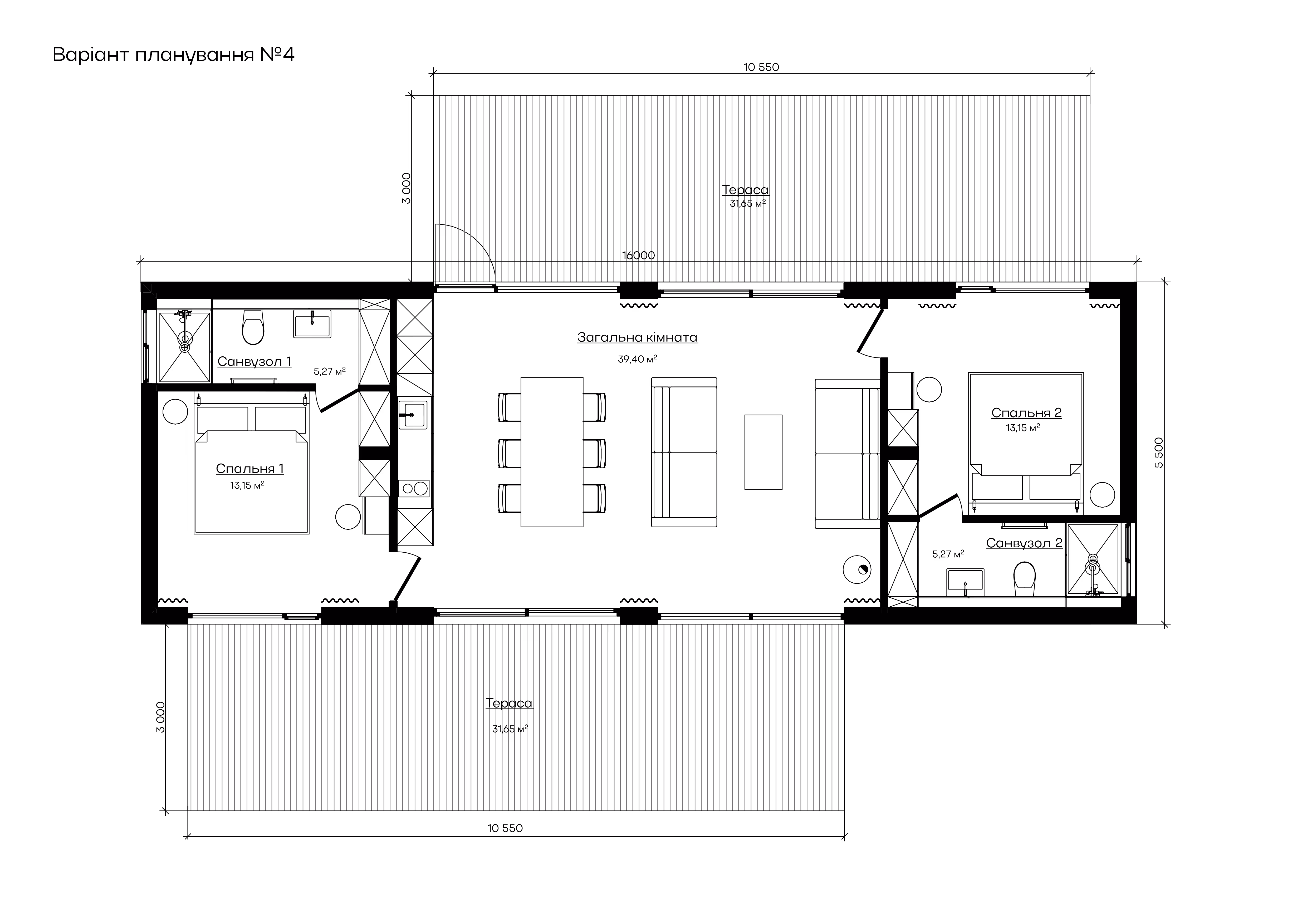 Це перша і єдина модель будинку в нашому каталозі, виконана по дерев'яно-каркасній технології, без використання CLT.